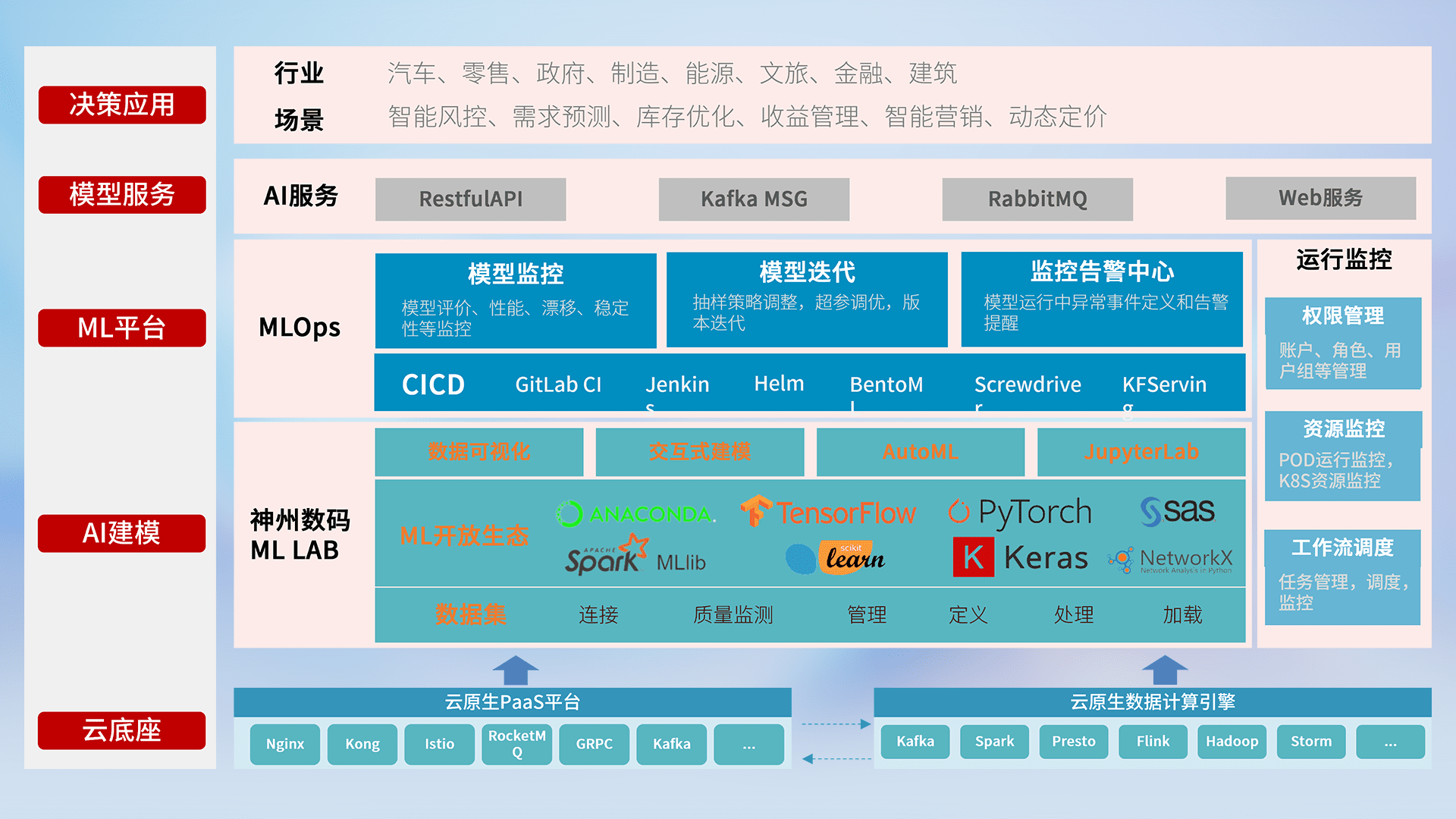 数据+模型双引擎驱动,,,,面向智能服务场景,,快速灵活利用AI技术,,,,支持业务决策,,,,助力企业智能化转型破局。。